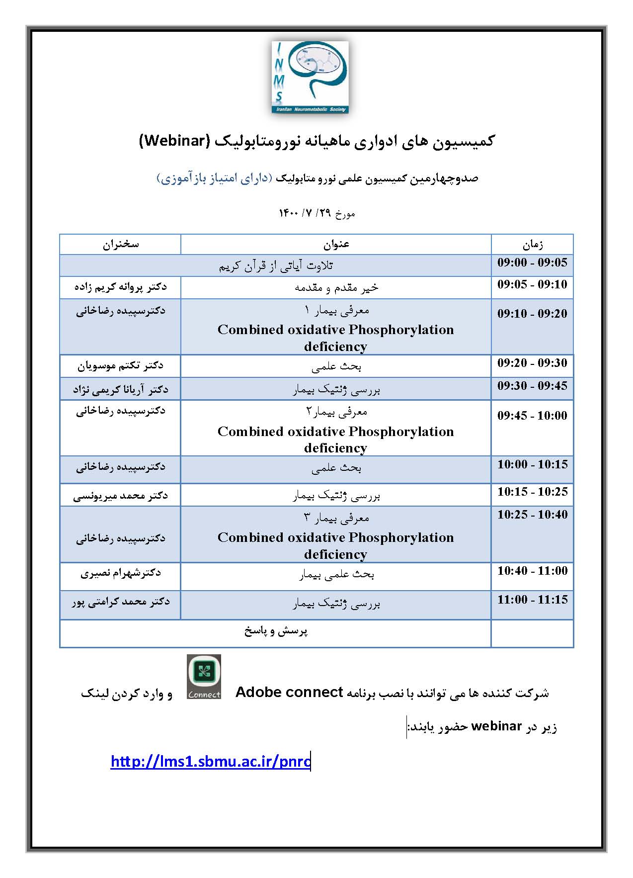 صدوپنجمین کمیسیون علمی نورو متابولیک (دارای امتیاز بازآموزی) مورخ 29/ 7/ 1400